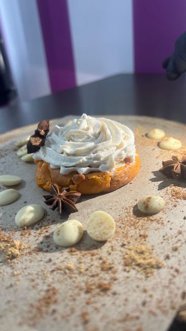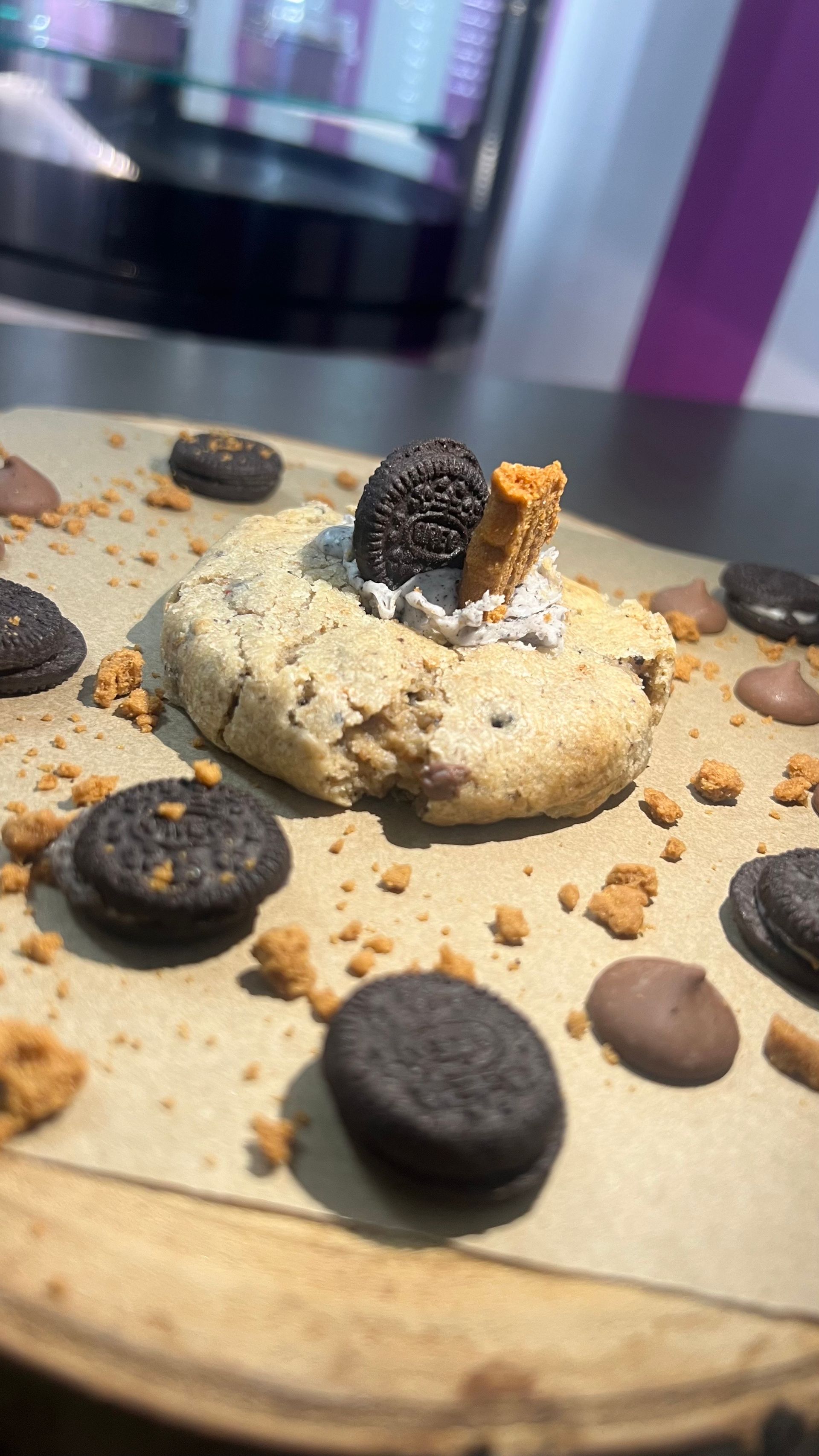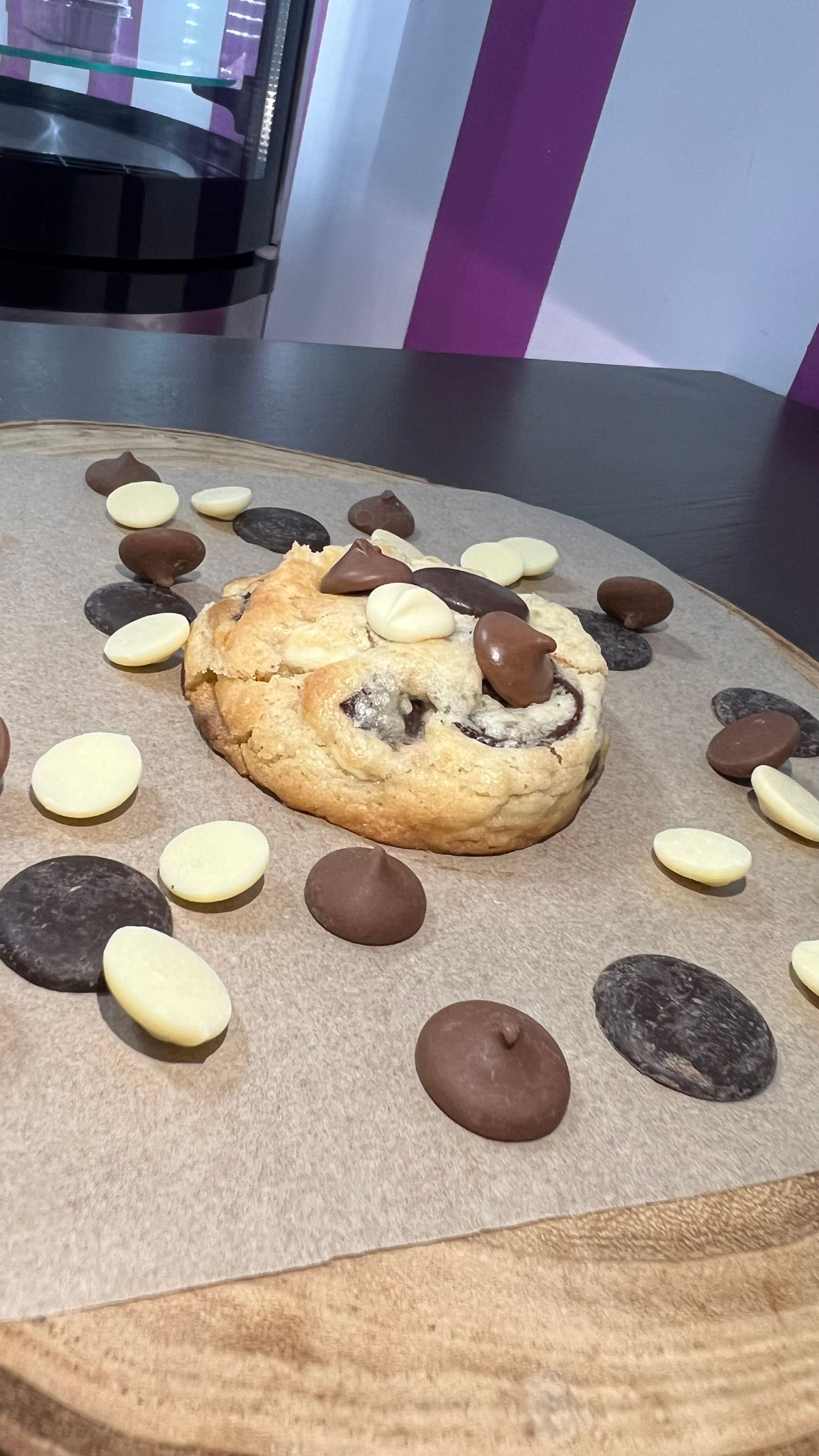 Hoy mi amiga me llevó a este sitio de galletas y la verdad que súper súper bien!!!!❤️ Nos recomendó varias galletitas y nos quedamos con la de Oreo y Cinnamon Roll, desgraciadamente son semanales así que habrá que ir probando cada novedad. El señor súper súper majo, un placer haber ido, repitiria 100%🙂↕️